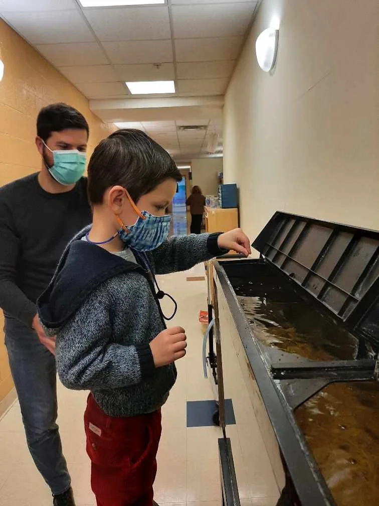 In partnership with the New Mexico Department of Game and Fish and Trout Unlimited, rainbow trout were delivered to their new aquatic home here at May School. Students are caring for the trout by feeding them, testing the water quality, and cleaning the tank.